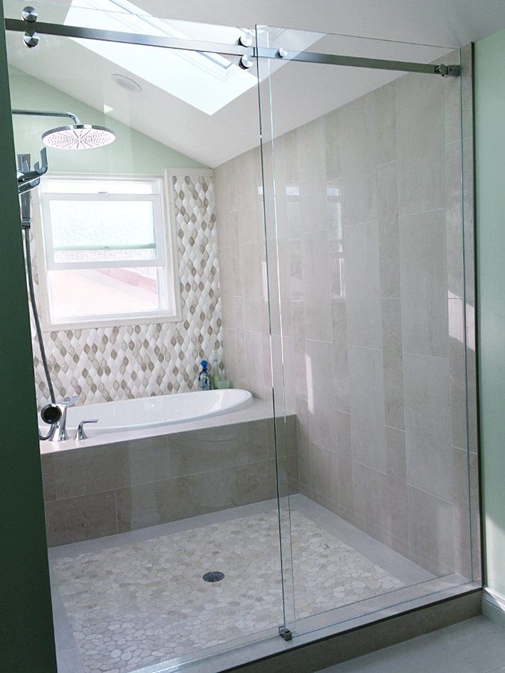 My Master Bath Remodel Large Marble Shower Sliding Shower Door Curbless Almost Shower Master Bathroom Design Bathroom Remodel Cost Bathrooms Remodel
